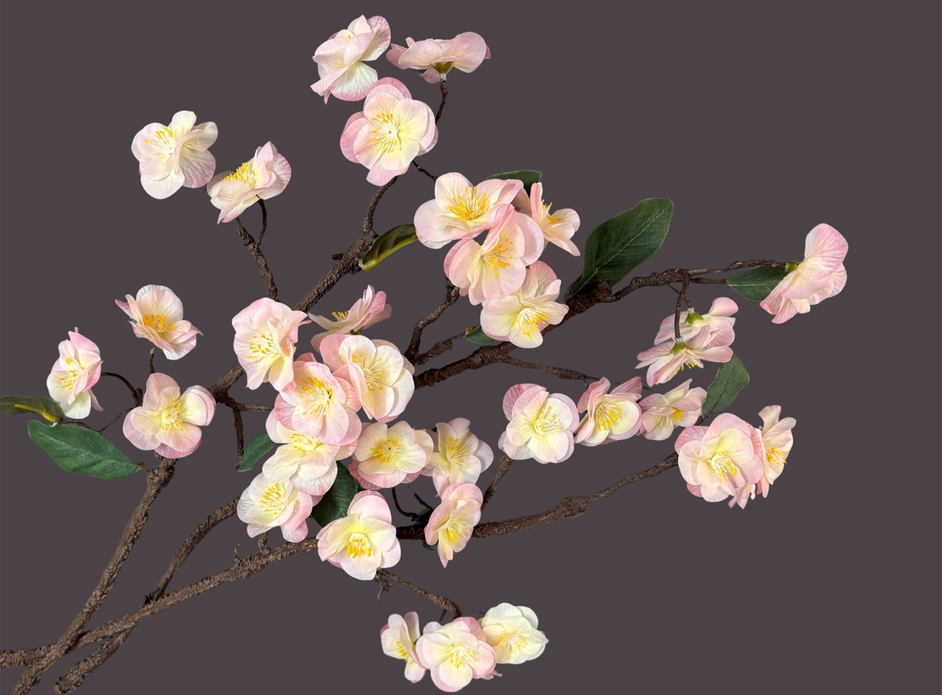 Delicate pink faux cherry blossoms capturing poetic beauty and serene charm.