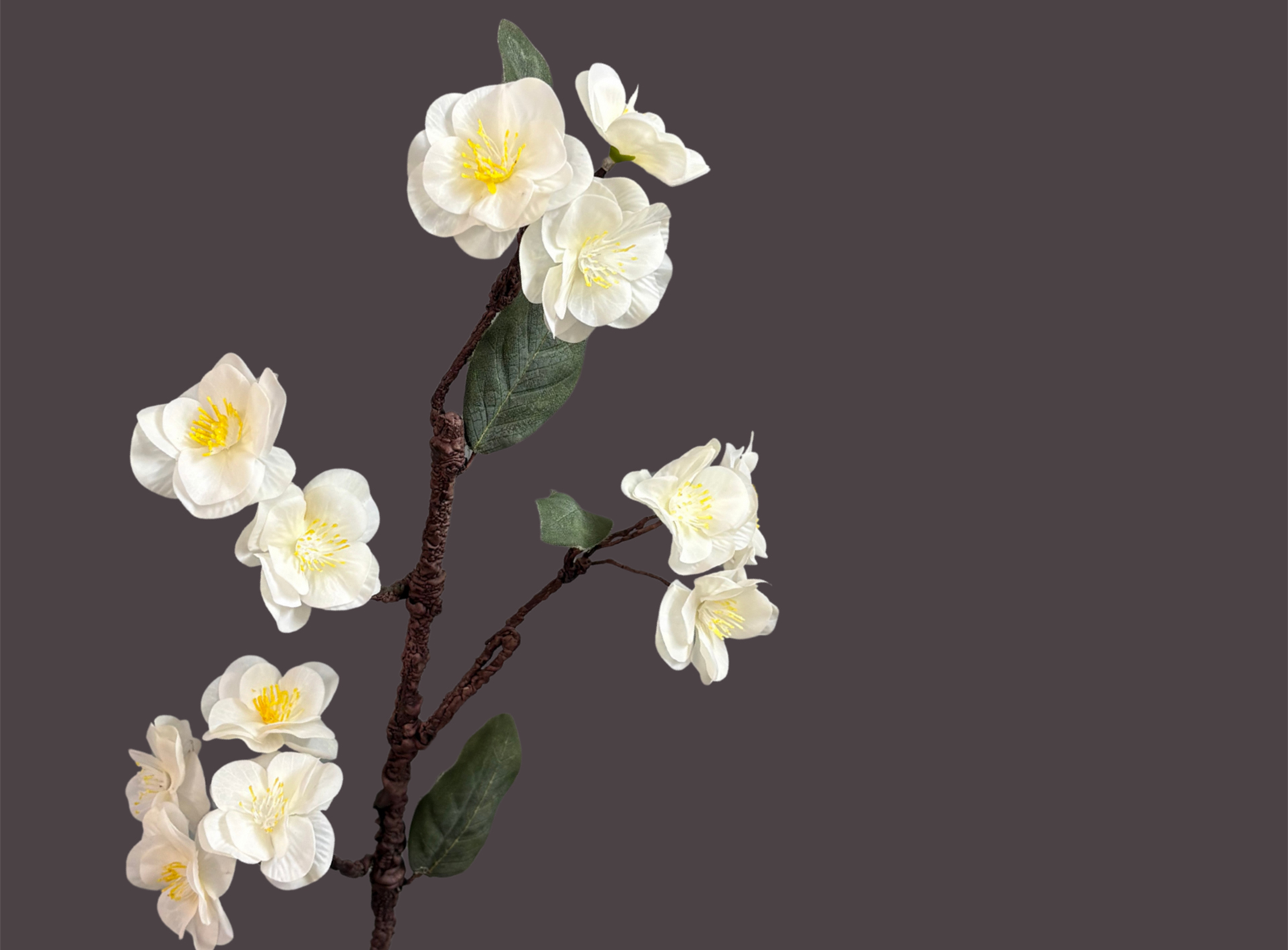 Ethereal white faux cherry blossoms that evoke calm, purity, and understated luxury.