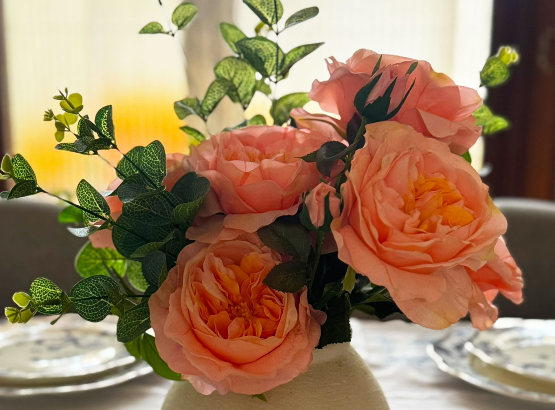 Coral roses arranged with soft precision, bringing warmth, romance, and refined luxury to any setting.
